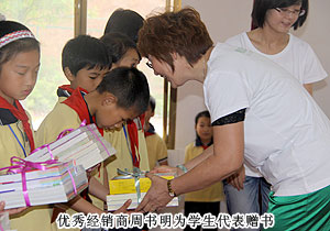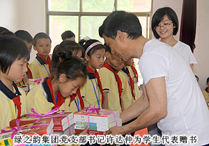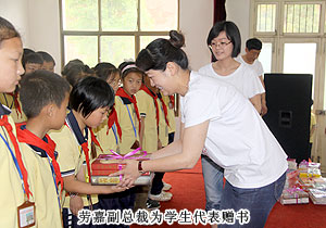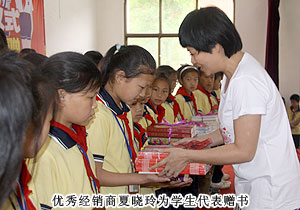 綠之韻集團董事常務副總裁勞嘉、黨支部書記許達仲、慈善基金負責人蔣文,湖南地區(qū)優(yōu)秀經(jīng)銷商代表周書明、羅新春、夏曉玲等出席捐贈儀式,用精美的圖書為孩子們打開知識世界的一扇窗。