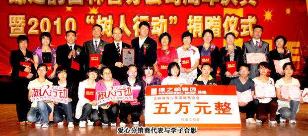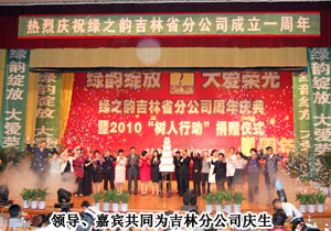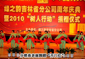 2010年5月29日,綠之韻吉林分公司喜迎“綠韻綻放?大愛榮光”一周年慶典暨“綠之韻樹人行動”捐贈儀式。綠之韻集團執(zhí)行總經(jīng)理龔振、吉林分公司經(jīng)理劉曉桅與1000多名分銷精英共同為吉林分公司點亮生日蠟燭,歡樂慶生!同時,吉林省青少年發(fā)展基金會部長王超與東北師范大學10名品學兼優(yōu)的貧困學子列席會議,接受吉林分公司10名愛心分銷商5萬元人民幣的愛心捐贈。