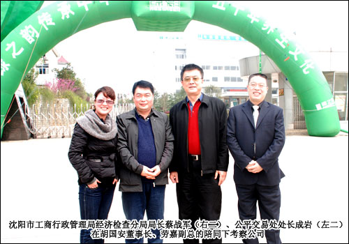 作為在全國(guó)擁在多家分公司以及加盟專賣店的湖南省著名商標(biāo)企業(yè),綠之韻集團(tuán)得到各地政府部門的關(guān)注與大力支持。2010年3月14、15日,黑龍江省工商行政管理局以及沈陽(yáng)市工商行政管理局領(lǐng)導(dǎo)一行,親臨綠之韻集團(tuán)考察。考察組首先聽(tīng)取了公司董事常務(wù)副總經(jīng)理勞嘉女士對(duì)企業(yè)的介紹,對(duì)有特色的地方給予贊賞肯定,對(duì)不了解的地方提出問(wèn)題,由公司做出解答。介紹之后,在胡國(guó)安董事長(zhǎng)以及勞嘉副總的陪同下,工商局領(lǐng)導(dǎo)們又實(shí)地考察了公司的生產(chǎn)經(jīng)營(yíng)情況。通過(guò)實(shí)地考察,兩地工商局領(lǐng)導(dǎo)分別與公司管理層進(jìn)行了溝通和交流,同時(shí)結(jié)合市場(chǎng)發(fā)展的需求,及時(shí)指出企業(yè)在運(yùn)營(yíng)過(guò)程中必須注意和重視的幾個(gè)環(huán)節(jié)并提出了指導(dǎo)性建議。