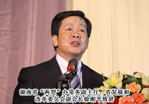 會上,湖南省“兩型”辦常務(wù)副主任、省發(fā)展和改革委員會副會長徐湘平在致辭中表示,此次聯(lián)誼會不僅是各級政府對新湘商促進湖南省經(jīng)濟發(fā)展作出貢獻的充分肯定,也為禮贊新湘商敢為人先、不屈不撓的進取精神,新產(chǎn)業(yè)需要新湘商,新湘商更要有時代意識,更有創(chuàng)新意識,更注重產(chǎn)業(yè)與自然生態(tài)的協(xié)調(diào),更注重社會效益,省委、省政府對新湘商的崛起充滿了殷切期待。同時,湖南省委常委、長沙市委書記陳潤兒發(fā)來賀辭,并鼓勵湘商再建新功、再創(chuàng)佳績。