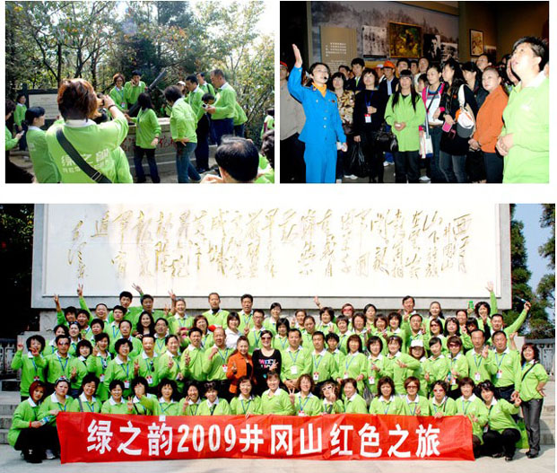 2009年10月28至30日,剛剛參加完綠之韻第二屆星級(jí)店長(zhǎng)暨中層骨干研討會(huì)的分銷精英和總部員工代表,在綠之韻集團(tuán)董事、常務(wù)副總經(jīng)理勞嘉的帶領(lǐng)下展開(kāi)了為期三天的“綠之韻2009井岡山紅色之旅”。