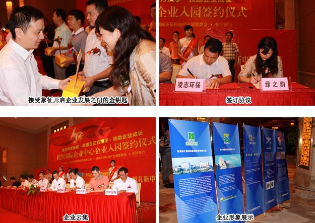 2009年9月27日,湖南環(huán)??萍紙@長沙國際企業(yè)中心企業(yè)簽約入園儀式在湖南長沙運達(dá)•喜來登大酒店隆重舉行。入園簽約儀式得到了省市區(qū)領(lǐng)導(dǎo)和有關(guān)部門大力支持,各級領(lǐng)導(dǎo)、長沙銀行、市青年聯(lián)合會及意向企業(yè)代表匯聚一堂,共同見證這次具有重要里程碑意義的盛會。綠之韻集團(tuán)常務(wù)副總經(jīng)理勞嘉女士、湖南綠之韻保健日用品有限公司執(zhí)行總經(jīng)理孫立農(nóng)先生作為此次入園十八家企業(yè)代表出席本次大會,并簽訂入園協(xié)議。