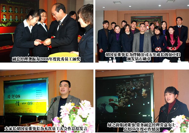 2009年1月20日下午3點(diǎn),綠之韻2008年員工總結(jié)表彰大會暨新春團(tuán)拜會在集團(tuán)公司總部隆重舉行。所有綠之韻同仁齊聚一堂,共同回顧不平凡的一年中走過的輝煌歷程,共同憧憬綠之韻集團(tuán)的美好未來。