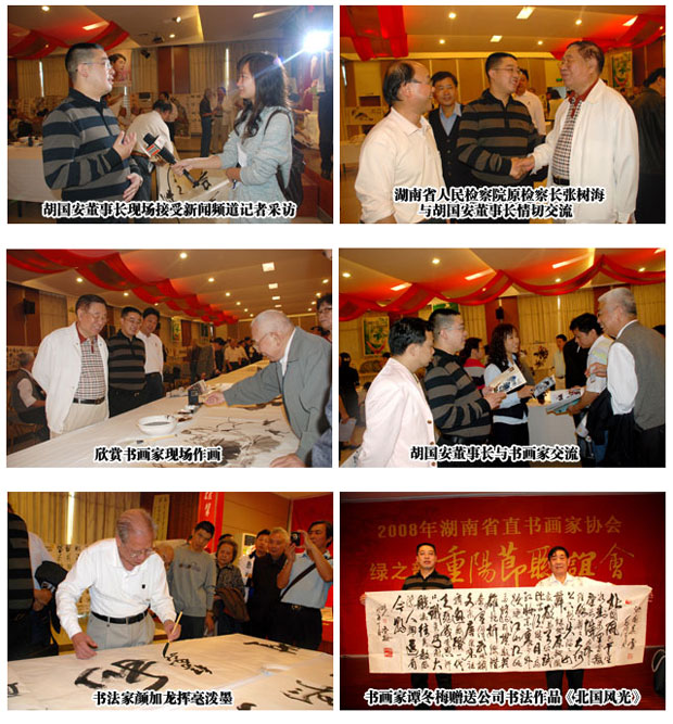 一年一度秋風(fēng)勁,不是春光勝似春光, 金秋時節(jié),又逢重陽佳節(jié),由綠之韻集團舉辦的“湖南省直書畫家協(xié)會2008年重陽書畫聯(lián)誼會”于2008年10月5日上午在湖南綠之韻大酒店貴賓樓多功能廳隆重舉行。