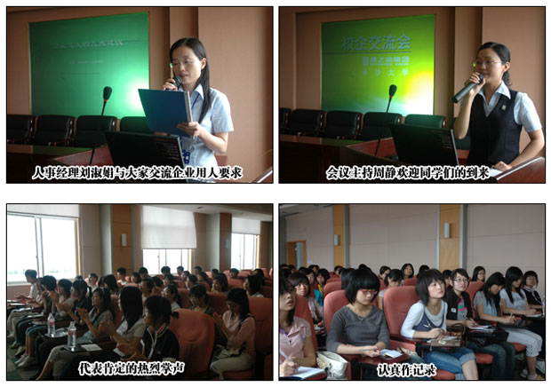 2008年6月17日,為響應共青團省委人才培養(yǎng)計劃,加強學校和企業(yè)更好的交流合作,實現(xiàn)學校輸送合適人才到企業(yè),企業(yè)順利引入理想人才,在湖南省共青團省委的組織下,長沙大學大一文秘專業(yè)的幾十名大學生走進了享有盛譽的綠之韻集團,與企業(yè)進行一次零距離接觸。