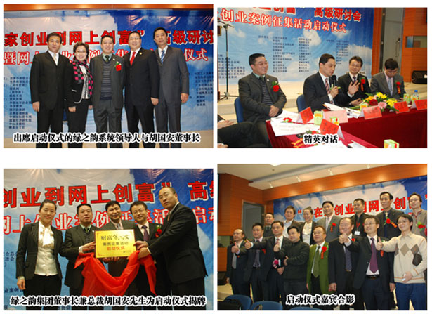 綠之韻集團(tuán)董事長兼總裁胡國安先生作為《財(cái)富第六波》——在家創(chuàng)業(yè)一書的作者為啟動(dòng)儀式揭牌,并與各路專家共同探討從在家創(chuàng)業(yè)到網(wǎng)上創(chuàng)富的話題。對于《財(cái)富第六波——在家創(chuàng)業(yè)》一書發(fā)行所引起的關(guān)注熱潮,以及即將圍繞展開的一系列活動(dòng),胡總表示:這不僅只是綠之韻集團(tuán)未來的發(fā)展方向,互聯(lián)網(wǎng)與行銷行業(yè)的接軌,更是社會(huì)發(fā)展、網(wǎng)絡(luò)經(jīng)濟(jì)創(chuàng)業(yè)不可遏止的趨勢,它所代表的將是整個(gè)創(chuàng)業(yè)模式顛覆傳統(tǒng)的改變。