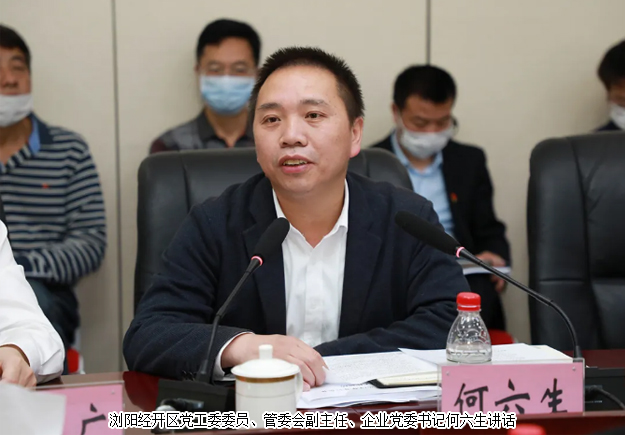 2020年4月28日,瀏陽經(jīng)開區(qū)非公企業(yè)黨建工作推進座談會舉行。瀏陽經(jīng)開區(qū)黨工委委員、管委會副主任、企業(yè)黨委書記何六生,企業(yè)黨委專職副書記陳飛雪,企業(yè)黨委黨建科科長胡曉江等領(lǐng)導(dǎo)出席會議。綠之韻集團黨委書記劉云參加會議。
