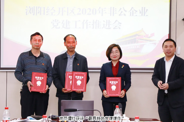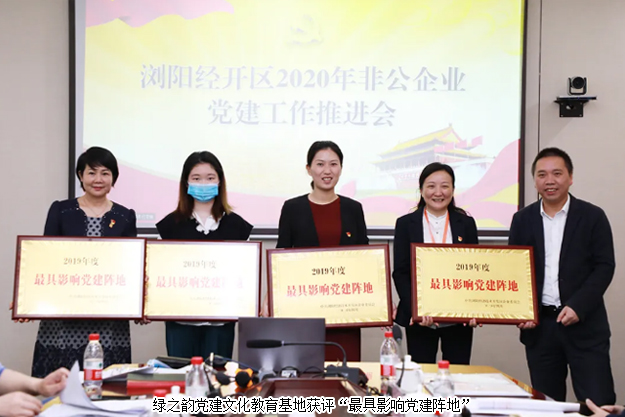 2019年,瀏陽經(jīng)開區(qū)非公企業(yè)黨組織認(rèn)真貫徹落實瀏經(jīng)企發(fā){2019}2號文件精神,扎實開展黨建陣地的升級、黨課課件的提標(biāo)、主題黨日活動的創(chuàng)新等工作。會上,瀏陽經(jīng)開區(qū)黨工委委員、管委會副主任、企業(yè)黨委書記何六生為在2019年“非公黨建三最”評選活動中獲獎的企業(yè)與個人頒發(fā)了獎牌與證書。綠之韻集團黨委黨建活動室獲評“最具影響黨建陣地”;黨員譚紅制作的《心中有陽光,腳下有力量》黨課課件榮獲“最具特色黨課課件”。