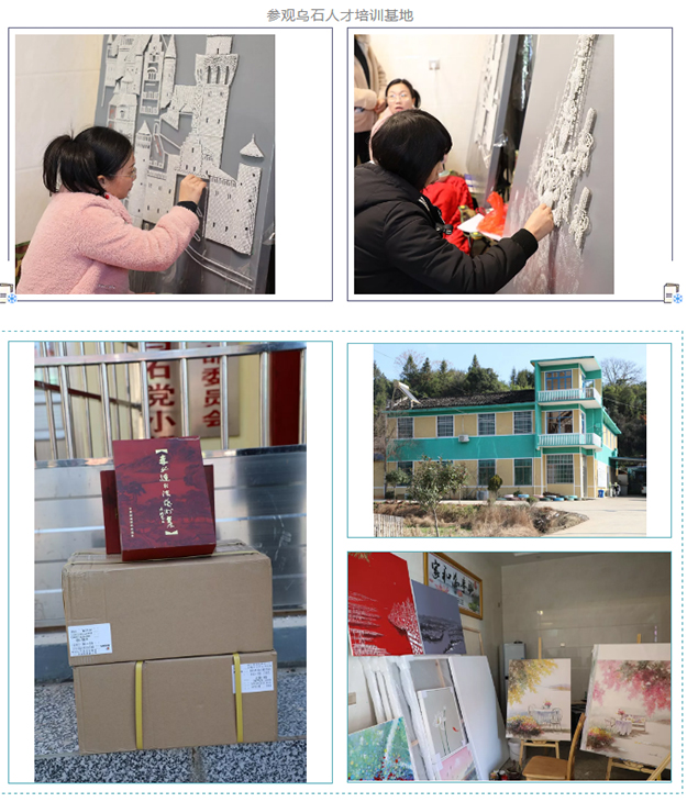 愛心志愿者一行參觀了人才培訓(xùn)基地和烏石當(dāng)代藝術(shù)館。在烏石當(dāng)代藝術(shù)館內(nèi),陳列著的一幅幅頗具藝術(shù)感的畫作。據(jù)了解,這些畫作都是由村里人才基地培訓(xùn)后的村民手工制作而成的。在人才培訓(xùn)基地,村民們不僅能培養(yǎng)書法繪畫的興趣愛好、豐富業(yè)余生活,還能在畫作賣出之后獲得收益,貼補(bǔ)家用。了解到館內(nèi)目前書籍收藏較少,劉云書記和綠之韻愛心志愿者特地籌集了一批藝術(shù)書籍捐贈(zèng)給藝術(shù)館,以豐富館藏。
