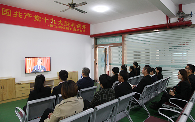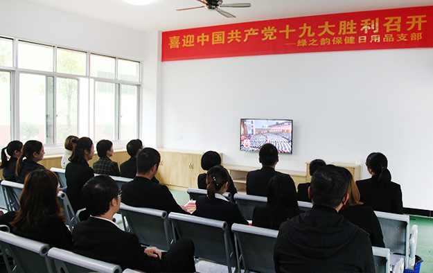2017年10月18日,上午9時(shí),萬眾矚目的中國共產(chǎn)黨第十九次全國代表大會(huì)(以下簡稱“十九大”)在北京人民大會(huì)堂隆重開幕。綠之韻集團(tuán)保健日用品支部組織黨員職工集中收看了黨的“十九大”開幕式。綠之韻集團(tuán)副總經(jīng)理胡均安、梅其慧,綠之韻集團(tuán)黨委書記劉云,黨委副書記許達(dá)仲與黨員們共同聆聽了習(xí)近平同志代表十八屆中央委員會(huì)作的工作報(bào)告。