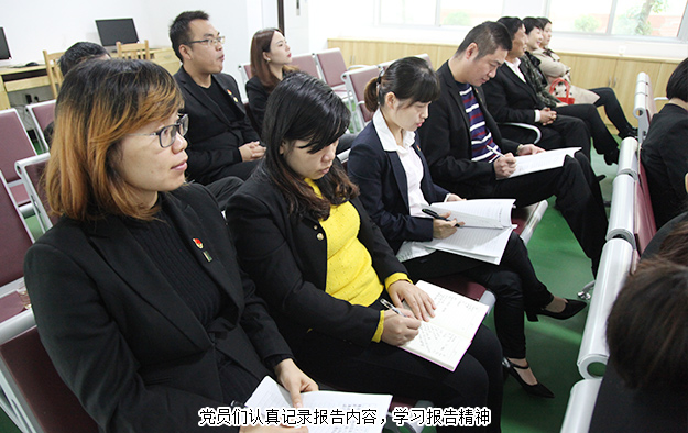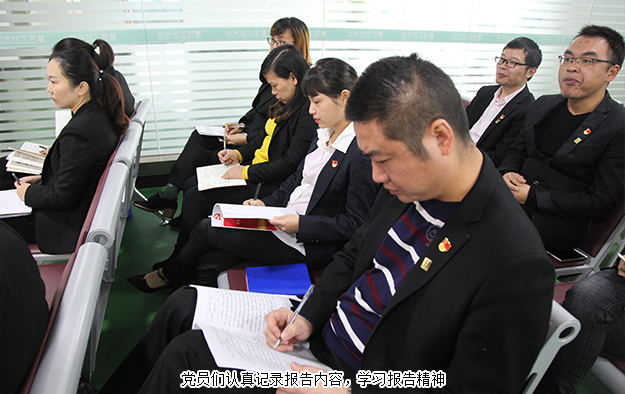 奪取新時(shí)代中國特色社會(huì)主義偉大勝利》的報(bào)告。報(bào)告中指出,黨的“十八大”以來的五年,是黨和國家發(fā)展進(jìn)程中很不平凡的五年。在這五年中,國務(wù)院國資委、廣大中央企業(yè)深入貫徹落實(shí)以習(xí)近平同志為核心的黨中央治國理政新理念新思想新戰(zhàn)略,不忘初心、砥礪奮進(jìn),各項(xiàng)事業(yè)均取得了不凡的成就。觀看過程中,黨員們聚精會(huì)神,不時(shí)在筆記本上快速記下報(bào)告中的重要語句和要點(diǎn),加深記憶與學(xué)習(xí)。聽到激動(dòng)之處,黨員們更是數(shù)度起身,情不自禁地鼓起了掌。