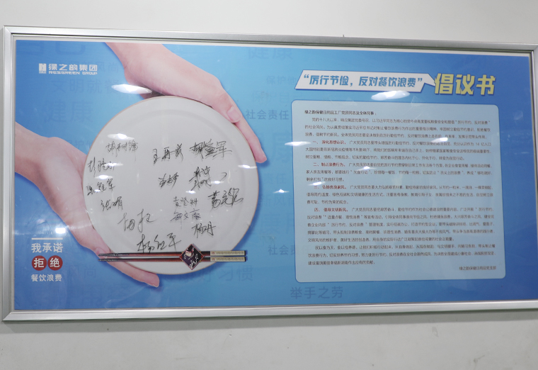 為了讓“厲行節(jié)儉、杜絕浪費(fèi)”的意識(shí)深入人心,2020年9月7日,綠之韻集團(tuán)黨委在集團(tuán)食堂舉行了“厲行節(jié)儉——反對(duì)餐飲浪費(fèi)”倡議活動(dòng)。集團(tuán)黨員帶頭在“光盤行動(dòng)——拒絕舌尖上的浪費(fèi)”承諾墻上簽名并鄭重承諾:一、深化思想認(rèn)識(shí),要帶頭增強(qiáng)厲行勤儉節(jié)約、反對(duì)餐飲浪費(fèi)的政治自覺(jué);二、制止浪費(fèi)行為,要自覺(jué)把厲行節(jié)約貫穿到日常工作生活各個(gè)方面;三、弘揚(yáng)優(yōu)良家風(fēng),要大力弘揚(yáng)艱苦樸素、勤儉持家的良好家風(fēng);四、倡導(dǎo)文明新風(fēng),要把艱苦奮斗、勤儉節(jié)約作為社會(huì)公德建設(shè)的重要內(nèi)容。