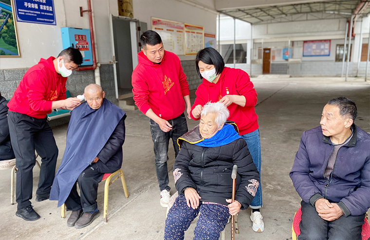 活動當(dāng)天,綠之韻集團黨委書記劉云、工會主席馮紅帶領(lǐng)黨團志愿者們滿懷熱情地來到敬老院,為老人們發(fā)放洗發(fā)水、沐浴露等慰問品,與老人們閑話家常,詳細了解老人們的生活情況。志愿者們?nèi)宄扇?、分工協(xié)作為老人們打掃衛(wèi)生、修剪指甲、洗剪頭發(fā)。在志愿者們的精心梳理下,老人們精神面貌煥然一新,精神抖擻。