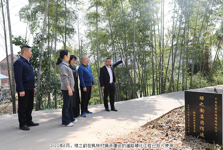 實(shí)施鄉(xiāng)村振興建設(shè)是黨和國(guó)家交給民營(yíng)企業(yè)的一項(xiàng)重要任務(wù)。一直以來(lái),綠之韻都把建設(shè)美麗鄉(xiāng)村與企業(yè)發(fā)展相結(jié)合。2022年,綠之韻通過(guò)湖南省慈善總會(huì)捐資200萬(wàn)元專(zhuān)門(mén)用于鄉(xiāng)村振興項(xiàng)目。綠之韻集團(tuán)黨委、公益基金會(huì)分別與瀏陽(yáng)北盛鎮(zhèn)邊洲村、大瑤鎮(zhèn)楓林村、安化冷市鎮(zhèn)胡家村、邵陽(yáng)羅家水村、永州勾藍(lán)瑤村、新化汝溪村等多個(gè)村委簽訂村企共建協(xié)議,并因地制宜,開(kāi)展鄉(xiāng)村振興建設(shè)項(xiàng)目。其中,大瑤鎮(zhèn)楓林村就是綠之韻村企共建中的一站。綠之韻捐資10萬(wàn)元用于楓林村道路硬化工程和提質(zhì)改造項(xiàng)目,希望幫助楓林村的居民打開(kāi)致富路、安心路、幸福路,創(chuàng)造更加美好的生活?;顒?dòng)當(dāng)天,綠之韻集團(tuán)副總裁胡均安帶領(lǐng)黨團(tuán)成員特意前往楓林村中連至黃泥坳道路硬化工程所在地查看項(xiàng)目投入使用情況。