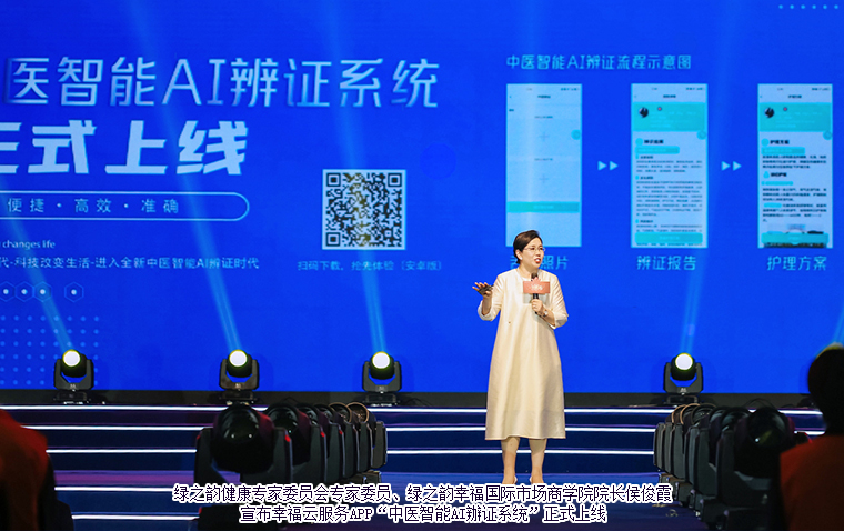 大會(huì)伊始,所有的幸福代言人共同唱響《為了你的幸?!?,拉開了本次大會(huì)的序幕。綠之韻健康專家委員會(huì)專家委員、綠之韻幸福國(guó)際市場(chǎng)商學(xué)院院長(zhǎng)侯俊霞宣布幸福云服務(wù)app“中醫(yī)智能AI辦證系統(tǒng)”正式上線。綠韻悅喜智能科技有限公司首席研發(fā)專家、綠之韻幸福國(guó)際市場(chǎng)商學(xué)院特聘教授駱春崗介紹了“中醫(yī)智能AI辦證系統(tǒng)”的研發(fā)理念和未來(lái)前景。