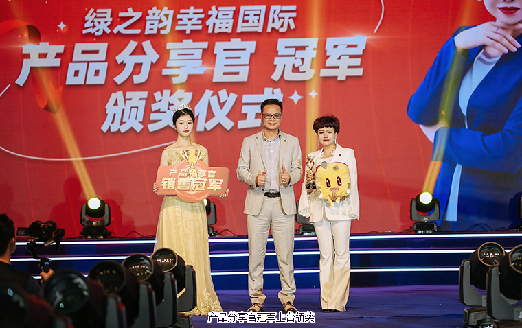 乘風(fēng)破浪,無(wú)畏前路,不是永遠(yuǎn)不輸,而是永不服輸,在拼搏的路上,每一刻都是勝利者。在活動(dòng)現(xiàn)場(chǎng),燃動(dòng)全場(chǎng)的歡呼聲,為冠軍而來(lái)。綠之韻集團(tuán)副總裁、幸福導(dǎo)師夏運(yùn)良為“2023產(chǎn)品分享官銷售業(yè)績(jī)冠軍”團(tuán)隊(duì)頒獎(jiǎng),獲獎(jiǎng)代表袁夢(mèng)發(fā)表感言。