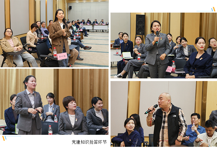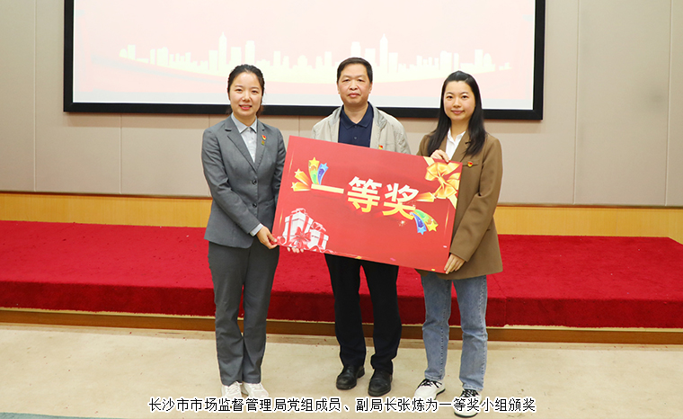 在接下來的黨建知識問答環(huán)節(jié),長沙市市場監(jiān)督管理局機關第五黨支部與綠之韻集團黨委的黨員代表分成四個小組進行PK。雙方黨員代表圍繞中國共產黨的發(fā)展歷史妙語連珠,機智問答,現場氛圍濃厚。四支隊伍經過多輪搶答,最終綠之韻集團黨委代表的第三小組與長沙市市場監(jiān)督管理局代表的第一小組脫穎而出獲得一等獎。