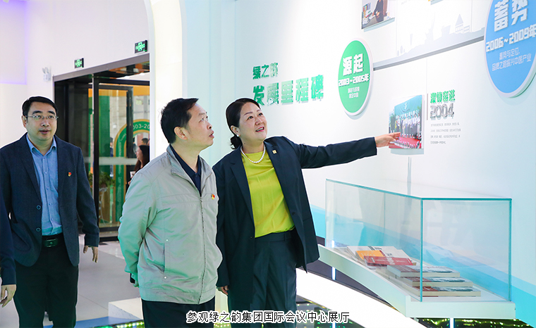 領導一行先后參觀了綠之韻集團國際會議中心展廳、黨建文化教育基地,與勞嘉總裁圍繞綠之韻集團的市場布局、產品研發(fā)生產、文化品牌建設、公益慈善活動及非公黨建工作等開展情況展開深入交流。領導一行肯定了綠之韻集團積極履行社會責任和嚴格把關產品生產等工作方面取得的顯著成效,對綠之韻非公黨建工作的開展給與高度評價。