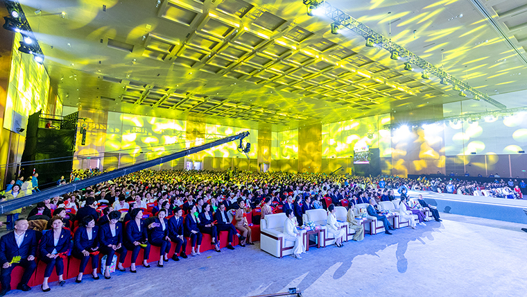 我們站在前所未有的時(shí)代,在奔流不息中翻涌向前,五載春秋的堅(jiān)守與信任,讓幸福這張名片成為經(jīng)典。在現(xiàn)場(chǎng)最為熱烈的掌聲中,綠之韻集團(tuán)董事長(zhǎng)胡國(guó)安上臺(tái)講話。他首先向大會(huì)現(xiàn)場(chǎng)以及通過在線互動(dòng)視頻觀看本次大會(huì)盛況的綠之韻家人致以熱烈的歡迎和誠(chéng)摯的問候,并向每一位獲獎(jiǎng)?wù)咧乱詿崃业淖YR。他說道,每一年的九月我都會(huì)去東莞的工廠,這幾年我發(fā)現(xiàn)東莞的工廠變化非常大,跟集團(tuán)公司從150平米發(fā)展到如今規(guī)模,非常相似,東莞的工廠在建立之初,面積非常小,在楊總、駱總的帶領(lǐng)下,實(shí)現(xiàn)了巨大的飛躍。剛才夏總告訴我,我們的產(chǎn)品獲得了40多項(xiàng)專利,還是幾十項(xiàng)在申報(bào)中。綠之韻幸福國(guó)際的這五年,非常不容易,從小到大,從無到有,成就了無數(shù)幸福的家庭,讓工廠一步步壯大,讓市場(chǎng)一步步壯大,成為行業(yè)傳頌的佳話,為你們點(diǎn)贊!剛才在臺(tái)上看到這么多幸福代言人受到表彰和獎(jiǎng)勵(lì),為你們高興,為你們驕傲!每天晨起最讓我幸福的一件事情是為幸福代言人發(fā)送的朋友圈動(dòng)態(tài)點(diǎn)贊??吹侥銈?yōu)槭袌?chǎng)付出的身影,看到你們?yōu)閳F(tuán)隊(duì)解決矛盾時(shí)的身影,看到你們?cè)诼糜沃锌鞓返姆窒?,看到你們?cè)谥κ袌?chǎng)發(fā)展中的分享,為你們加油!我相信,更加深信,2024綠之韻的未來,你們?cè)谙目偧肮芾韴F(tuán)隊(duì)的帶領(lǐng)下一定會(huì)再創(chuàng)新高,我們要善于發(fā)現(xiàn)美好,創(chuàng)造美好,把美好帶給每一個(gè)家庭,世間美好,一定會(huì)如約而至。