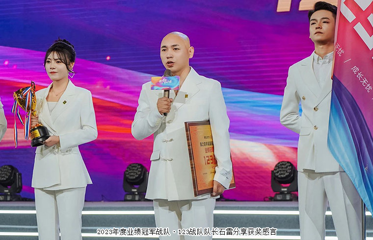 熱血如虹鑄戰(zhàn)旗,乘風(fēng)破浪斬荊棘。每一份榮譽(yù)的背后都是辛勤的付出,每一份成功的背后都有不尋常的拼搏。面對(duì)復(fù)雜激烈的市場(chǎng)環(huán)境,他們迎風(fēng)而上,積極開拓市場(chǎng)版圖,用飽滿的熱忱與拼搏的干勁,完美詮釋了綠之韻幸福代言人的風(fēng)范。在欣賞完極富回憶色彩的年代秀后,綠之韻集團(tuán)運(yùn)營(yíng)中心執(zhí)行總經(jīng)理、綠之韻國(guó)際商學(xué)院常務(wù)副院長(zhǎng)陳敏,綠之韻健康專家委員會(huì)專家委員、綠之韻幸福國(guó)際市場(chǎng)商學(xué)院院長(zhǎng)侯俊霞共同為“綠之韻幸福國(guó)際2023年度十佳戰(zhàn)隊(duì)”的獲獎(jiǎng)戰(zhàn)隊(duì)鼎盛戰(zhàn)隊(duì),桐心戰(zhàn)隊(duì),眾雁戰(zhàn)隊(duì)、玖眾戰(zhàn)隊(duì)、玖一戰(zhàn)隊(duì)、玖鳳戰(zhàn)隊(duì)、鵬海戰(zhàn)隊(duì)、第四戰(zhàn)隊(duì)、廣富戰(zhàn)隊(duì)頒發(fā)榮譽(yù)。綠之韻國(guó)際商學(xué)院執(zhí)行院長(zhǎng)黎芋成為“2023年度業(yè)績(jī)冠軍戰(zhàn)隊(duì)·123戰(zhàn)隊(duì)”頒發(fā)榮譽(yù)。獲獎(jiǎng)戰(zhàn)隊(duì)隊(duì)長(zhǎng)石雷分享獲獎(jiǎng)感言。