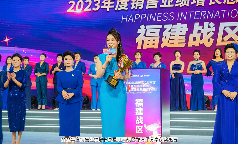一幅畫,炙熱滾燙,一封信,用情至深。這是一份成就夢(mèng)想的事業(yè),更是一條成就家庭的幸福之路。在熾熱的目光中汲取力量,讓初心依舊溫暖如初,她們恣意在一線市場(chǎng)上揮灑光和熱,戰(zhàn)區(qū)同心,硬核出征,活力全開,竭盡所能,終會(huì)頂峰相見。綠之韻集團(tuán)總裁勞嘉,綠之韻集團(tuán)副總裁、幸福導(dǎo)師夏運(yùn)良“2023年度銷售業(yè)績(jī)?cè)鲩L(zhǎng)率冠軍戰(zhàn)區(qū)·江蘇”頒發(fā)榮譽(yù)。綠之韻集團(tuán)董事長(zhǎng)胡國(guó)安,綠之韻集團(tuán)副總裁、幸福導(dǎo)師夏運(yùn)良共同為“2023年度銷售業(yè)績(jī)?cè)鲩L(zhǎng)總量冠軍戰(zhàn)區(qū)·福建頒發(fā)榮譽(yù)。獲獎(jiǎng)戰(zhàn)隊(duì)代表曹蘇皖、鄭方平分享獲獎(jiǎng)感言。