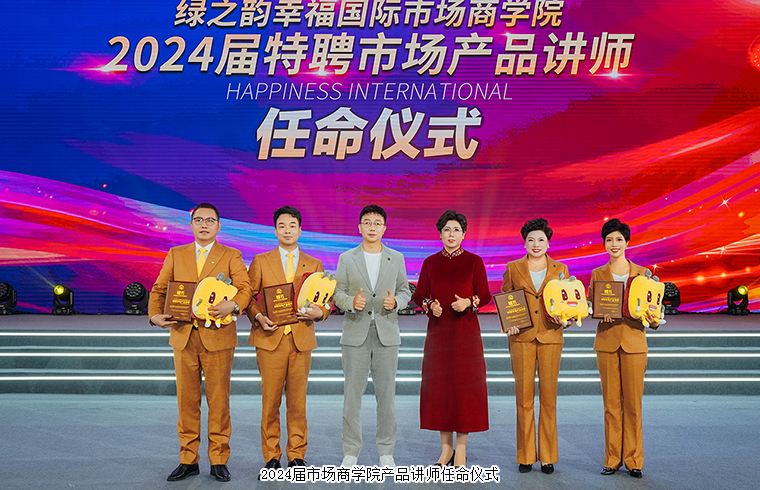 以熱愛守護(hù)幸福,用幸福創(chuàng)造奇跡。綠之韻幸福國(guó)際商學(xué)院自成立以來,成為綠之韻幸福國(guó)際的文化名片,以最具市場(chǎng)化的姿態(tài)為幸福代言人提供最為廣闊的舞臺(tái)。在3000多位幸福代言人的見證下,現(xiàn)場(chǎng)舉行了盛大的任命儀式,綠之韻健康專家委員會(huì)專家委員、綠之韻幸福國(guó)際市場(chǎng)商學(xué)院院長(zhǎng)侯俊霞,綠之韻幸福國(guó)際市場(chǎng)商學(xué)院特聘教授、綠韻悅喜智能科技有限公司首席研發(fā)專家駱春崗共同為2024屆特聘市場(chǎng)產(chǎn)品講師頒發(fā)聘書。綠之韻國(guó)際商學(xué)院執(zhí)行院長(zhǎng)黎芋成、綠之韻集團(tuán)運(yùn)營(yíng)中心執(zhí)行總經(jīng)理、綠之韻國(guó)際商學(xué)院常務(wù)副院長(zhǎng)陳敏共同為2024屆市場(chǎng)商學(xué)院陪導(dǎo)團(tuán)頒發(fā)聘書。綠之韻國(guó)際商學(xué)院執(zhí)行院長(zhǎng)黎芋成為幸福國(guó)際市場(chǎng)商學(xué)院副院長(zhǎng)袁夢(mèng)頒發(fā)聘書。