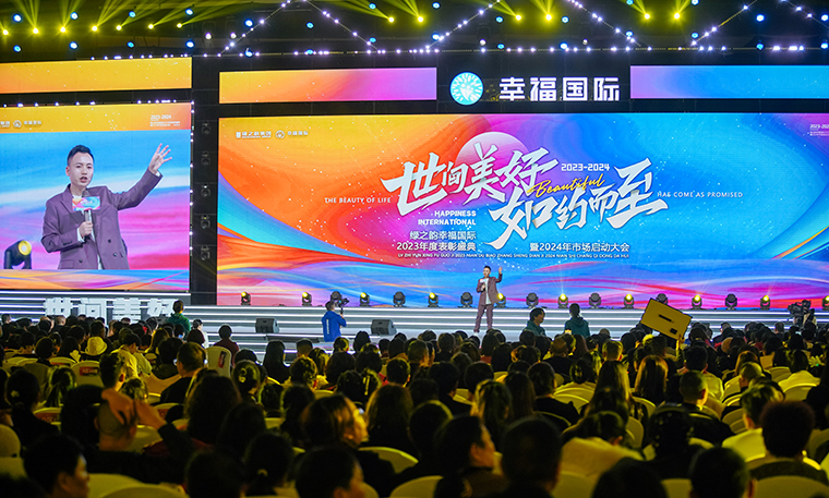 時(shí)間之河川流不息,從第一次信任地托付,到努力地翻山越嶺,披荊斬棘,那些追夢(mèng)路上的相持相攜 ,時(shí)間會(huì)看見,終會(huì)在時(shí)光里找到答案。在現(xiàn)場(chǎng)熱烈的掌聲中,綠之韻集團(tuán)副總裁、幸福導(dǎo)師夏運(yùn)良上臺(tái)講話。他表示,世間美好,如約而至,更多美好,正在發(fā)生。2023年我和一群有情有義的人,在一起做一件有意義的事,正是因?yàn)橛幸饬x,我們才有所成就,正是因?yàn)橛幸饬x,我們獲得了更多的支持。今年我做了三件非常有意義的事,一是不拘一格降人才,在深化執(zhí)行戰(zhàn)區(qū)化管理的同時(shí)實(shí)行了戰(zhàn)隊(duì)化管理;二是帶著大家出去見山看??词澜?,見眾生見自己;三是帶著大家重視運(yùn)動(dòng)重視健康,組織各類體育運(yùn)動(dòng),鍛煉體能增強(qiáng)體質(zhì)。在2024年也有三件事要做,一是管理戰(zhàn)略的調(diào)整,仍然需要深度理解并推進(jìn)。2024全國(guó)布局5大市場(chǎng),10大戰(zhàn)區(qū),全新的市場(chǎng)管理班子,已經(jīng)與大家正式見面,在新的一年,我們會(huì)火力全開,做好戰(zhàn)區(qū)里每一個(gè)幸福代言人的“服務(wù)員”,讓成熟的、成功的發(fā)展經(jīng)驗(yàn),優(yōu)秀的執(zhí)委們、陪導(dǎo)們的智慧,在全國(guó)流動(dòng)起來,做成綠之韻幸福國(guó)際獨(dú)有的特色;二是堅(jiān)持產(chǎn)品自用,堅(jiān)持無自用、不分享、不熱愛、不熱賣的發(fā)展理念,接下來,我和研發(fā)團(tuán)隊(duì)要做的,是不斷提高我們產(chǎn)品的技術(shù)壁壘,深耕產(chǎn)品,把服務(wù)做到極致;三是承擔(dān)社會(huì)責(zé)任,向有需要的人傳遞幸福和美好,用善心、善行,去帶動(dòng)和影響身邊更多的人,參與公益,奉獻(xiàn)愛心,讓公益行動(dòng)生長(zhǎng)出更持久、蓬勃的內(nèi)在生命力,讓善行成為生命的習(xí)慣。我們都是大時(shí)代的追夢(mèng)人,乘風(fēng)破浪的幸福號(hào)巨輪已經(jīng)啟航。從此刻出發(fā),與大愛同行,我們即將奔赴更新的廣闊事業(yè)天地,踏浪邁步全球化的征程!同時(shí)希望每一個(gè)有著共同夢(mèng)想的幸福代言人都懷揣這份追夢(mèng)的力闊步向前,去創(chuàng)造屬于自己的美好明天!剩下的交給時(shí)間,他一定會(huì)給出我們想要的答案,我深信,所有美好,都會(huì)如約而至。