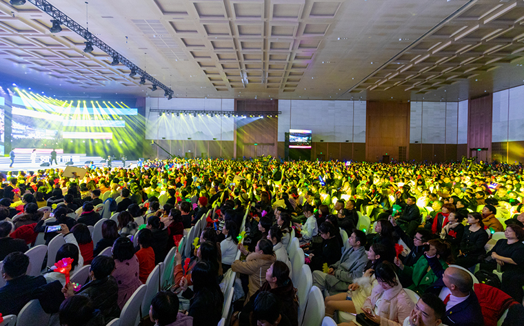 大會(huì)伊始,四位老師與幸福代言人娓娓道來,通過情景劇的形式讓大家更了解產(chǎn)品更懂一線市場(chǎng)的風(fēng)采,一段段故事生動(dòng)再現(xiàn),一個(gè)個(gè)故事感人至深,引發(fā)現(xiàn)場(chǎng)家人們的強(qiáng)烈共鳴。隨后,在婉轉(zhuǎn)優(yōu)雅的旋律中,所有的幸福奮斗者們齊唱響綠之韻集團(tuán)二十周年紀(jì)念曲《愿世間所有的美好如約而至》,在溫馨熱鬧的氛圍中共赴這場(chǎng)滿載美好與期望的年度盛會(huì)。