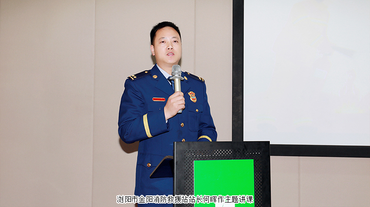 此次培訓(xùn)還特別邀請(qǐng)了瀏陽(yáng)市金陽(yáng)消防救援站站長(zhǎng)何暉為學(xué)員們帶來(lái)了一堂消防演練課,圍繞火災(zāi)預(yù)防、隱患排除、消防器材使用、初起火災(zāi)撲救、火場(chǎng)逃生等內(nèi)容進(jìn)行培訓(xùn),進(jìn)一步提高后勤安保職工的消防安全意識(shí)和自救互救能力。
