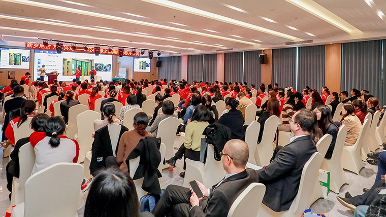 在全場(chǎng)學(xué)員的熱烈掌聲中,胡國(guó)安董事長(zhǎng)作重要講話。他首先代表集團(tuán)公司向這三天為大家傾心授課的各位老師表示衷心的感謝和崇高的敬意,向主動(dòng)積極參加培訓(xùn)的學(xué)員們致以親切的問(wèn)候。他表示,二十年來(lái)綠之韻始終把“弘揚(yáng)優(yōu)秀文化和打造學(xué)習(xí)型企業(yè)”作為企業(yè)文化系統(tǒng)的一個(gè)重要組成部分和企業(yè)管理的核心要素,努力為全體員工搭建專(zhuān)業(yè)化的成長(zhǎng)通道和具有幸福感的工作環(huán)境。公司投資20億元興建的綠之韻中心項(xiàng)目已經(jīng)全面進(jìn)入裝修階段,即將投入使用。胡國(guó)安董事長(zhǎng)進(jìn)一步表示,每年的開(kāi)年訓(xùn),既是一次學(xué)習(xí)會(huì),也是一次動(dòng)員會(huì),希望參加本次開(kāi)年訓(xùn)的各位學(xué)員都可以真正做到學(xué)以增知、學(xué)以致用、學(xué)以修身,在學(xué)習(xí)中進(jìn)步,在進(jìn)步中成長(zhǎng),逐步成長(zhǎng)為家人的驕傲和同事的榜樣,實(shí)現(xiàn)自己不同人生階段的夢(mèng)想。剛才我們對(duì)2024年集團(tuán)工作計(jì)劃進(jìn)行了宣講,希望各子公司、各個(gè)部門(mén)、各位員工認(rèn)真學(xué)習(xí)貫徹年度計(jì)劃,快速進(jìn)入工作狀態(tài),成為團(tuán)隊(duì)中的“任意牌”,放到哪個(gè)崗位都可以發(fā)揮作用。在未來(lái)的工作中,大家也要將服務(wù)意識(shí)和團(tuán)隊(duì)精神貫穿到各個(gè)層面,積極主動(dòng)服務(wù)市場(chǎng)、服務(wù)企業(yè)、服務(wù)團(tuán)隊(duì)、服務(wù)部門(mén)。要崇尚創(chuàng)新,善于用創(chuàng)新的思路,創(chuàng)造性地發(fā)現(xiàn)、解決和處理好工作中遇到的各種問(wèn)題。要注重細(xì)節(jié),把每一件簡(jiǎn)單的事做好,就是不簡(jiǎn)單的;把每一件平凡的事做好,就是不平凡的。他強(qiáng)調(diào),今年是集團(tuán)“五五規(guī)劃”的開(kāi)局之年,讓我們以此次開(kāi)年訓(xùn)為新起點(diǎn),堅(jiān)定信心,腳踏實(shí)地,推動(dòng)集團(tuán)公司平穩(wěn)向前發(fā)展。最后,他祝愿本次培訓(xùn)取得圓滿成功,祝愿2024所有的美好正在發(fā)生。
