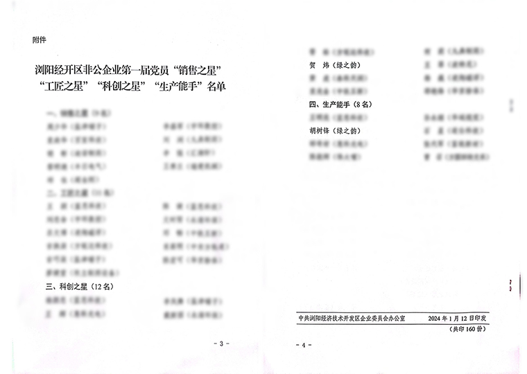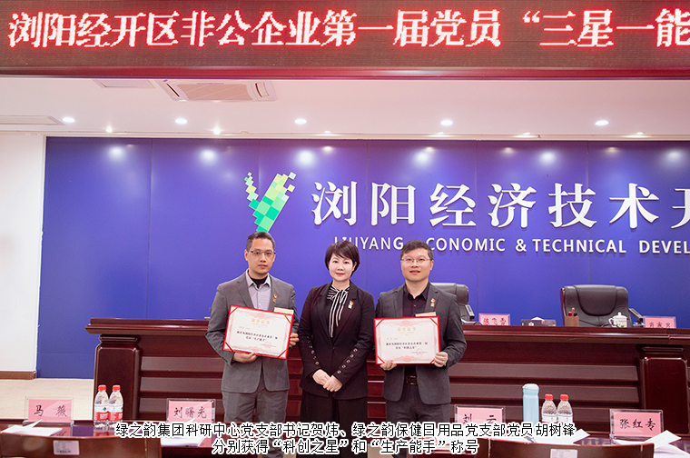 會上,還對瀏陽經(jīng)開區(qū)非公企業(yè)第一屆黨員“銷售之星”“工匠之星”“科創(chuàng)之星”“生產(chǎn)能手”的獲得者進行了表彰。綠之韻集團科研中心黨支部書記賀煒獲得“科創(chuàng)之星”稱號,綠之韻保健日用品黨支部黨員胡樹鋒獲得“生產(chǎn)能手”稱號。