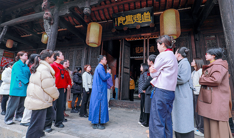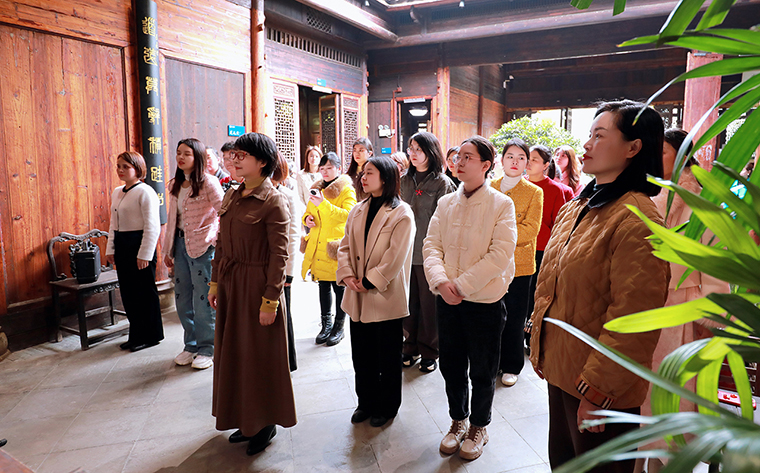 任重道遠(yuǎn),道不遠(yuǎn)人。道遠(yuǎn)書(shū)院是從江西高安按照一比一比例搬遷過(guò)來(lái)修繕的嘉慶年間的古宅,歷史悠久,古色古香,底蘊(yùn)蔚然。在老師的講解下,綠之韻的女神們一同進(jìn)入匠心園,重溫孔氏家訓(xùn),領(lǐng)悟中華文化,感受儒家文化氛圍,在經(jīng)典國(guó)學(xué)中洗禮身心感受愉悅,提升自我。通過(guò)實(shí)地參觀及詳細(xì)解說(shuō),全體女員工對(duì)儒家文化有了更全面的認(rèn)識(shí)和了解。隨后,大家走進(jìn)道遠(yuǎn)書(shū)院,學(xué)習(xí)并完成了傳統(tǒng)禮儀“盥手禮”和“拜孔禮”。“天地蒼蒼,乾坤茫茫,紅日初升,其道大光......”在領(lǐng)隊(duì)老師的誦讀中,大家端身立正,扶手高揖,以至誠(chéng)、感恩、恭敬之心向大成至圣先師孔老夫子行四鞠躬禮,沉浸式感受和學(xué)習(xí)了中國(guó)優(yōu)秀傳統(tǒng)文化。在幽靜禪意的院落中,綠之韻的女神們穿越時(shí)空,問(wèn)道先賢,與心靈對(duì)話(huà),感受這份內(nèi)心的崇敬與澄澈。