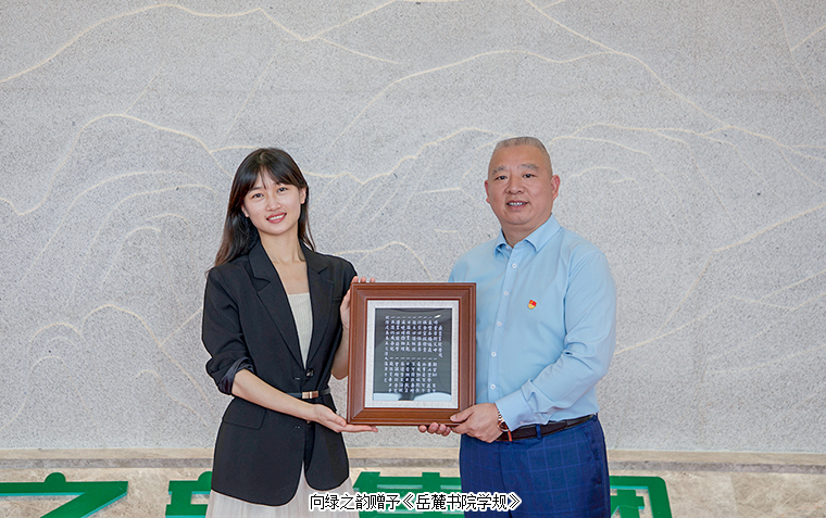 座談會(huì)上,胡均安常務(wù)副總裁對(duì)毛老師和同學(xué)們的到來(lái)表示熱烈歡迎。梅其慧常務(wù)副總經(jīng)理作主題分享,并對(duì)同學(xué)們提出的“綠之韻的企業(yè)發(fā)展理念”“人才管理培養(yǎng)體系”“企業(yè)文化建設(shè)”等方面問(wèn)題,一一予以詳盡解答。毛老師和同學(xué)們紛紛表示,在綠之韻人的眼睛里看到了光,這是對(duì)公司企業(yè)文化的認(rèn)同感,也是綠之韻堅(jiān)持企業(yè)培訓(xùn)和人才信念的匠心。交流尾聲,毛老師代表湖南大學(xué)工商管理學(xué)院EDP中心向綠之韻贈(zèng)予代表千年學(xué)府歷史文脈的《岳麓書(shū)院學(xué)規(guī)》。