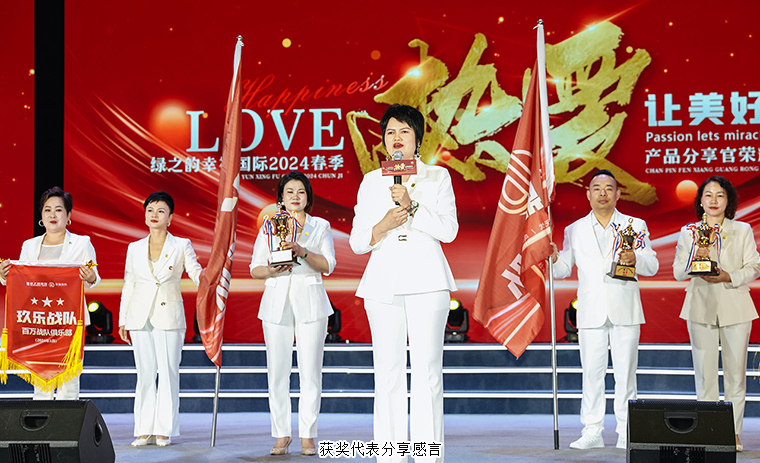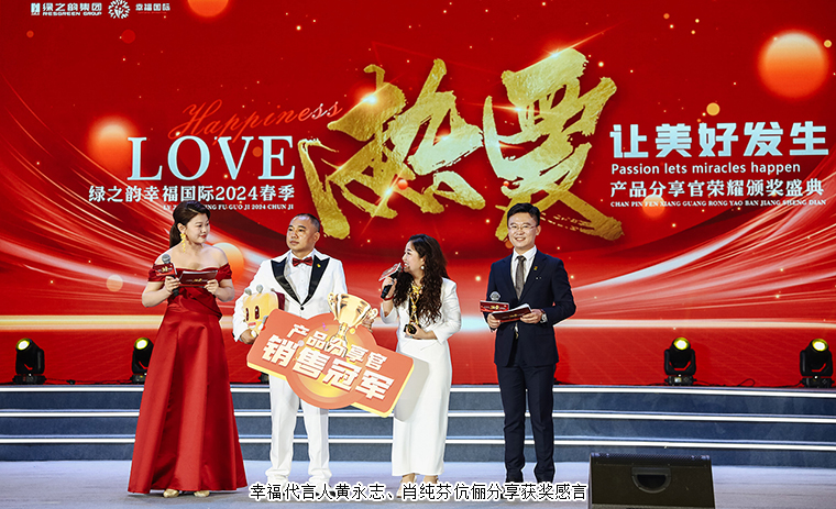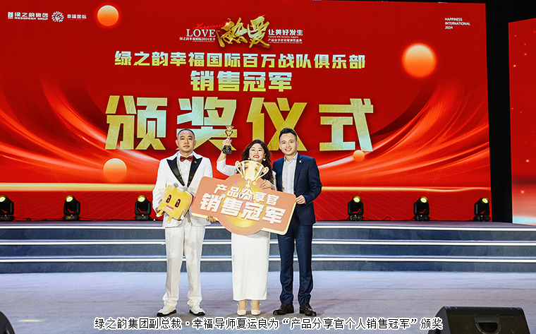他們,用奮斗到最后一秒的堅(jiān)持,全力以赴的拼搏,毫無保留的交付,上下一心的團(tuán)結(jié),不甘平庸的進(jìn)取,將每一份熱愛化作滋養(yǎng)生命的能量。他們,始終火力全開馳騁在市場(chǎng)一線,永遠(yuǎn)奔跑在沖刺目標(biāo)的道路上;他們,從未膽怯、迎難而上,帶領(lǐng)自己的團(tuán)隊(duì)勇攀一個(gè)又一個(gè)高峰。綠之韻集團(tuán)副總裁、幸福導(dǎo)師夏運(yùn)良為“產(chǎn)品分享官個(gè)人銷售冠軍”頒獎(jiǎng)。幸福代言人黃永志、肖純芬伉儷分享獲獎(jiǎng)感言。綠之韻國際商學(xué)院常務(wù)副院長、綠之韻集團(tuán)運(yùn)營部執(zhí)行總經(jīng)理陳敏,綠之韻健康專家委員會(huì)專家委員、綠之韻幸福國際市場(chǎng)商學(xué)院院長侯俊霞為“2024年一季度百萬戰(zhàn)隊(duì)”頒獎(jiǎng)。綠之韻國際商學(xué)院執(zhí)行院長黎芋成為“2024年一季度百萬戰(zhàn)隊(duì)冠軍”頒獎(jiǎng)。
