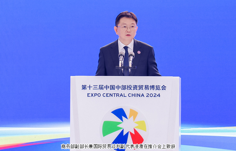 商務(wù)部副部長(zhǎng)兼國(guó)際貿(mào)易談判副代表凌激在推介會(huì)上致辭。他表示,中部地區(qū)發(fā)展?jié)摿薮?,合作空間廣闊,將為中外企業(yè)帶來(lái)更多市場(chǎng)機(jī)遇。中部博覽會(huì)已成為實(shí)施中部地區(qū)崛起戰(zhàn)略和中部六省擴(kuò)大國(guó)際經(jīng)貿(mào)合作的重要平臺(tái)。商務(wù)部將一如既往支持中部六省發(fā)揮區(qū)位和科創(chuàng)優(yōu)勢(shì),有序承接產(chǎn)業(yè)梯度轉(zhuǎn)移,加大吸引和利用外資,加快中非經(jīng)貿(mào)深度合作先行區(qū)、自貿(mào)試驗(yàn)區(qū)等開(kāi)放平臺(tái)建設(shè),不斷擴(kuò)大高水平開(kāi)放。希望大家借此機(jī)會(huì)增進(jìn)了解,推動(dòng)高質(zhì)量發(fā)展合作,共享中國(guó)市場(chǎng)新機(jī)遇,共同譜寫(xiě)中部地區(qū)崛起新篇章。