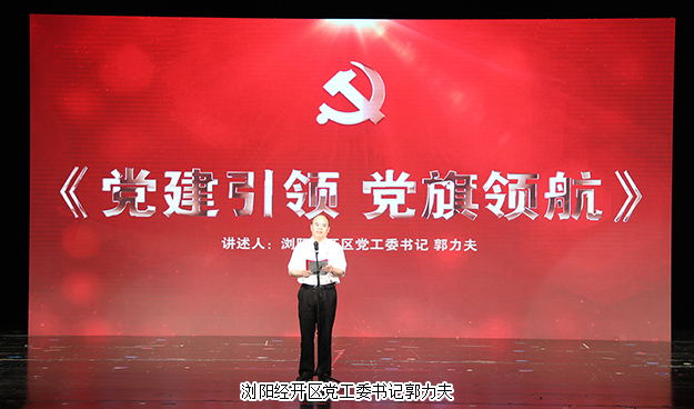 瀏陽(yáng)經(jīng)開(kāi)區(qū)黨工委書(shū)記郭力夫以“黨建引領(lǐng),黨旗領(lǐng)航”為主題發(fā)表講話(huà)。他首先代表瀏陽(yáng)經(jīng)開(kāi)區(qū)黨工委向受到表彰的黨建示范點(diǎn)、先進(jìn)基層黨組織和優(yōu)秀共產(chǎn)黨員表示熱烈的祝賀。他表示,此次表彰活動(dòng)旨在進(jìn)一步貫徹落實(shí)黨的十九大精神,高舉新時(shí)代中國(guó)特色社會(huì)主義思想的偉大旗幟,促進(jìn)園區(qū)高質(zhì)量發(fā)展,匯聚磅礴力量。未來(lái),瀏陽(yáng)經(jīng)開(kāi)區(qū)將繼續(xù)堅(jiān)持黨建引領(lǐng),推動(dòng)園區(qū)轉(zhuǎn)型升級(jí),突出“產(chǎn)業(yè)項(xiàng)目建設(shè)年”“營(yíng)商環(huán)境優(yōu)化年”“黨支部建設(shè)年”的工作主線,不斷開(kāi)創(chuàng)園區(qū)工作的新局面,以實(shí)際行動(dòng)為黨旗爭(zhēng)輝添彩,為發(fā)展建功立業(yè)。