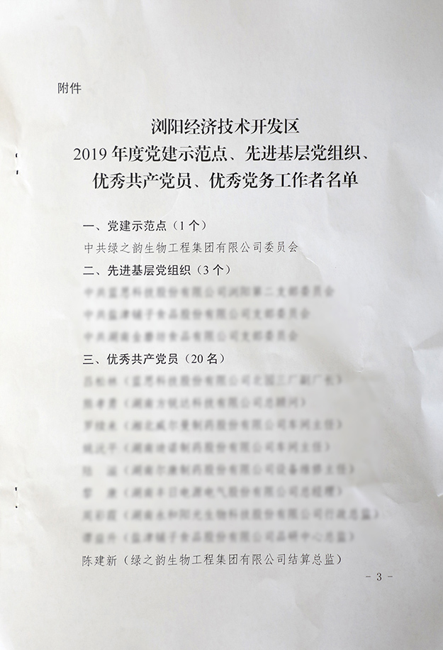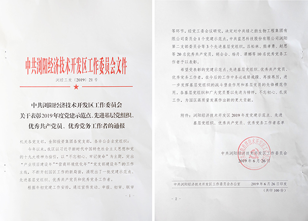 2019年6月27日,瀏陽(yáng)經(jīng)開(kāi)區(qū)黨工委在瀏陽(yáng)金陽(yáng)文化藝術(shù)中心召開(kāi)2019年“七一”表彰大會(huì)。瀏陽(yáng)經(jīng)開(kāi)區(qū)黨工委書(shū)記郭力夫,瀏陽(yáng)經(jīng)開(kāi)區(qū)黨工委副書(shū)記、管委會(huì)主任談文昌以及全體黨委領(lǐng)導(dǎo)、機(jī)關(guān)黨員、非公經(jīng)濟(jì)黨組織負(fù)責(zé)人、優(yōu)秀黨員和2019年度新發(fā)展的預(yù)備黨員參加會(huì)議。綠之韻集團(tuán)黨委書(shū)記劉云、黨委副書(shū)記許達(dá)仲帶領(lǐng)集團(tuán)優(yōu)秀黨務(wù)工作者、優(yōu)秀黨員、預(yù)備黨員參加會(huì)議。
