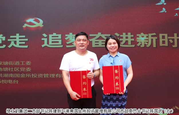 活動(dòng)最后,綠之韻集團(tuán)二支部與湖南國(guó)金所支部舉行了結(jié)對(duì)共建簽約儀式。綠之韻集團(tuán)黨委書記劉云表示,這不僅是一次支部之間的結(jié)隊(duì)共建、互幫互學(xué)活動(dòng),更是一次愛國(guó)主義教育,將熱愛祖國(guó)的種子播撒在每位黨員的心田里,也讓所有的黨員再一次體會(huì)了身為中國(guó)人的驕傲和對(duì)祖國(guó)的深情。未來,兩個(gè)支部可以優(yōu)勢(shì)互補(bǔ),互取所長(zhǎng),在今后的工作與生活中,始終保持黨員的初心,牢記肩頭的使命,一如既往的積極履行黨員的義務(wù)和職責(zé),發(fā)揮黨員的先鋒模范帶頭作用,砥礪奮進(jìn),為實(shí)現(xiàn)“中國(guó)夢(mèng),綠之韻夢(mèng)”做出更大的貢獻(xiàn)!
