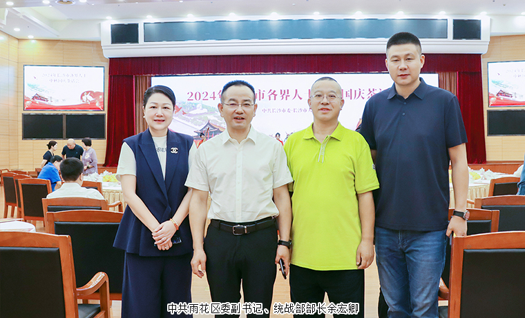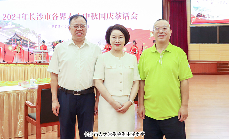 2024年9月13日,長(zhǎng)沙市各界人士中秋國(guó)慶茶話會(huì)舉行。中共湖南省委常委、長(zhǎng)沙市委書(shū)記吳桂英出席并講話。中共長(zhǎng)沙市委副書(shū)記、湖南湘江新區(qū)(長(zhǎng)沙高新區(qū))黨工委書(shū)記、岳麓區(qū)委書(shū)記譚勇,市人大常委會(huì)黨組書(shū)記、主任文樹(shù)勛,市政協(xié)主席、黨組書(shū)記陳剛,市委常委、長(zhǎng)沙警備區(qū)政委馮紫英,市委常委、常務(wù)副市長(zhǎng)彭華松,市委常委、市委統(tǒng)戰(zhàn)部部長(zhǎng)劉匯等市領(lǐng)導(dǎo)和老同志出席。長(zhǎng)沙市人大代表、香港長(zhǎng)沙聯(lián)誼會(huì)會(huì)長(zhǎng)、綠之韻集團(tuán)董事長(zhǎng)胡國(guó)安,湖南省政協(xié)委員、長(zhǎng)沙市工商聯(lián)(總商會(huì))副會(huì)長(zhǎng)、綠之韻集團(tuán)總裁勞嘉與全市各界人士代表歡聚一堂,飲一杯清茶,道一聲祝福,話一方發(fā)展。