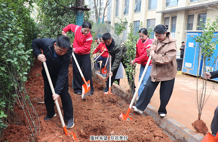 三月的風(fēng)裹挾著春信的密語,將春意潑灑在綠之韻中心的園林間。3月11日,在植樹節(jié)來臨之際,綠之韻中心黨支部以“播種希望 共筑美好”為主題,在綠之韻中心開展植樹節(jié)主題黨日活動(dòng)。綠之韻集團(tuán)總裁勞嘉、綠之韻公益基金會(huì)秘書長(zhǎng)蔣文、湖南綠之韻房地產(chǎn)開發(fā)有限公司總經(jīng)理周君四,副總經(jīng)理勞毅與綠之韻中心黨支部書記徐繼雷帶領(lǐng)黨員志愿者們共執(zhí)春鋤,以草木為墨,為綠之韻中心園林項(xiàng)目工筆春色。