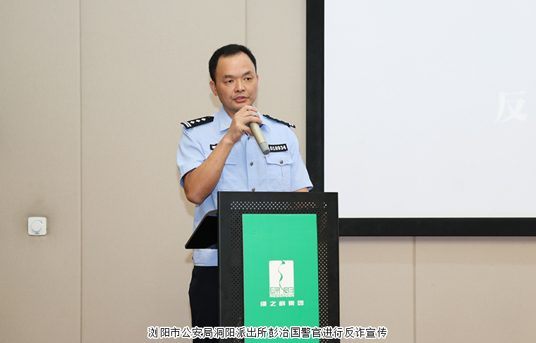 “陌生鏈接不要點(diǎn),可疑電話別輕信,轉(zhuǎn)賬匯款先核實(shí)!”2025年9月17日,瀏陽(yáng)市公安局洞陽(yáng)派出所彭治國(guó)警官、張猛警官走進(jìn)綠之韻集團(tuán)帶來(lái)了一堂生動(dòng)又“干貨”滿滿的反詐宣傳課,為企業(yè)員工的財(cái)產(chǎn)安全牢牢“上鎖”。綠之韻集團(tuán)常務(wù)副總裁胡均安、業(yè)務(wù)服務(wù)中心業(yè)務(wù)總經(jīng)理陳建新、黨委副書記許達(dá)仲帶領(lǐng)企業(yè)員工代表參加培訓(xùn)。