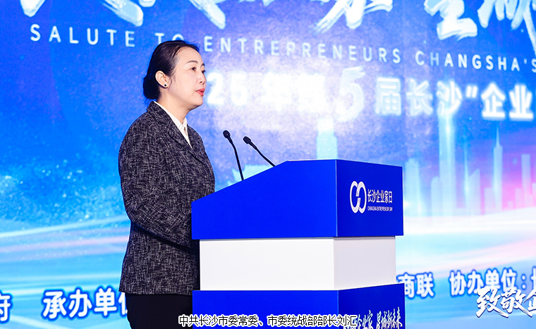 中共長沙市委常委、市人民政府常務副市長彭華松講話。他表示,廣大企業(yè)家是長沙經(jīng)濟發(fā)展的“頂梁柱”。全市已培育形成7大千億級產(chǎn)業(yè)集群、3個國家級先進制造業(yè)集群、2個國家級中小企業(yè)特色產(chǎn)業(yè)集群,成為全球第二個集聚5家以上世界工程機械50強企業(yè)的城市。民營經(jīng)濟貢獻占GDP的比重從十年前的45%躍升至65%。廣大企業(yè)家是長沙創(chuàng)新驅(qū)動的“生力軍”。全市近80%的技術(shù)合同、創(chuàng)新平臺、科技項目源自企業(yè),企業(yè)研發(fā)投入占全社會比重超過70%。廣大企業(yè)家是長沙民生改善的“守護者”。企業(yè)家積極履行社會責任,投身脫貧攻堅、慈善公益、穩(wěn)定就業(yè)等領(lǐng)域,民營企業(yè)吸納就業(yè)420多萬人,占全市就業(yè)總?cè)藬?shù)的80.1%,貢獻了全市90%以上的新增就業(yè)。站在“十四五”收官,“十五五”開啟的歷史節(jié)點,他強調(diào),希望廣大企業(yè)家堅守實業(yè)、做強主業(yè)。深耕專業(yè)領(lǐng)域,加快推動產(chǎn)業(yè)智能化、綠色化、融合化發(fā)展,積極謀劃國際化戰(zhàn)略布局,讓“長沙制造”金字招牌底色更亮。希望廣大企業(yè)家勇于創(chuàng)新、引領(lǐng)未來。聚焦關(guān)鍵核心技術(shù)和“卡脖子”環(huán)節(jié),強化研發(fā)投入和人才引育,深化與高校、科研院所協(xié)同創(chuàng)新,推動更多科技成果轉(zhuǎn)化為現(xiàn)實生產(chǎn)力。希望廣大企業(yè)家心懷家國、實干擔當。立足現(xiàn)代企業(yè)制度,胸懷國際視野,自覺涵養(yǎng)家國情懷,把企業(yè)價值與社會價值、把經(jīng)濟效益和社會效益融合起來,彰顯更大社會擔當。