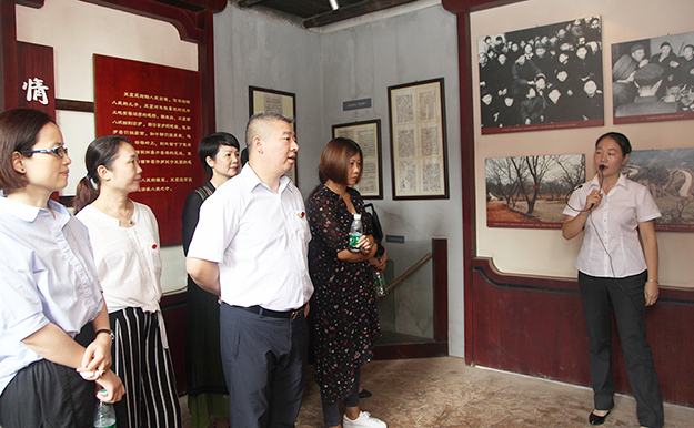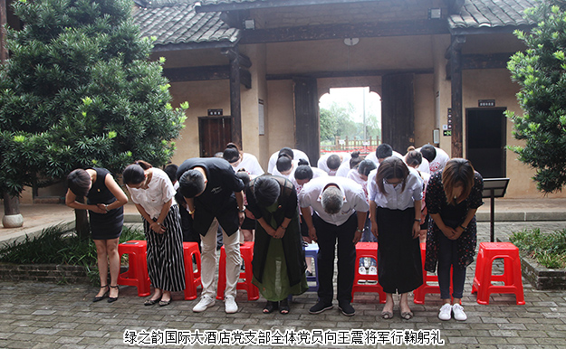 朗誦完畢后,綠之韻國(guó)際大酒店支部全體黨員有序進(jìn)入王震同志故居參觀?!盀閲?guó)開基,將軍百戰(zhàn)彪青史;畢生革命,桑梓千秋仰大名?!边@一幅掛在故居門前的對(duì)聯(lián)是對(duì)王震將軍波瀾壯闊的一生的最好詮釋。大家滿懷敬畏和感恩,聆聽著講解員描述王震同志生前為革命事業(yè)和黨的事業(yè)奮勇拼搏的光榮事跡,細(xì)致生動(dòng)的解說將眾人帶到了戰(zhàn)火紛飛的革命歲月,帶到了新中國(guó)建設(shè)初期的火紅年代。