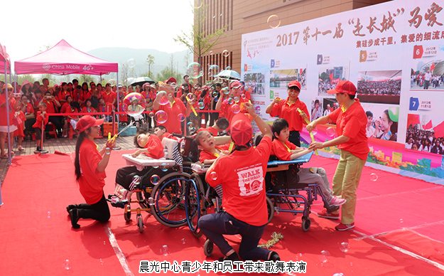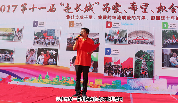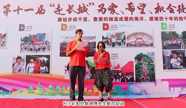 開幕式上,長沙彩虹總裁彼得先生致歡迎詞。長沙市第一福利院院長龍環(huán)致開幕詞,他們表示:2017年8月底,長沙彩虹孤殘兒童服務中心晨光中心的7名男孩已年滿16周歲,即將搬入社區(qū)小家庭,在新家庭學習生活自理、相互幫助、挖掘自身各種潛能。本次“走長城”活動就是為這7名男孩社區(qū)家庭籌措善款,感謝社會各界、愛心企業(yè)和社會人士的慷慨解囊,為推進孤殘兒童社區(qū)家庭的籌建項目,促進殘障事業(yè)的發(fā)展、共建幸福和諧家園貢獻出自己的一份力量。