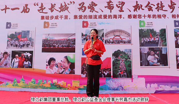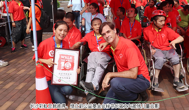 “走長城(Walk the Wall )”公益活動由長沙彩虹孤殘兒童服務中心(以下簡稱長沙彩虹)創(chuàng)始人高永恩先生于2007年發(fā)起,是一場旨在呼吁全社會關注孤、殘人士的愛心徒步活動。每年金秋,“走長城”在中國(北京、香港、長沙、衡陽、三門峽)、英國、美國、加拿大、澳大利亞等國家的數(shù)十個地區(qū)舉行。今年,在中國“走長城”活動的三個站點,將為長沙、衡陽的一群青少年孤兒融入社區(qū)環(huán)境、組建兩個“社區(qū)家庭”而籌備善款。自2014年初,綠之韻集團與長沙彩虹和孩子們結緣,胡國安董事長、勞嘉總裁每年多次帶隊看望孩子們,并捐贈愛心善款用于長沙彩虹湖南的孤殘兒童公益項目。
