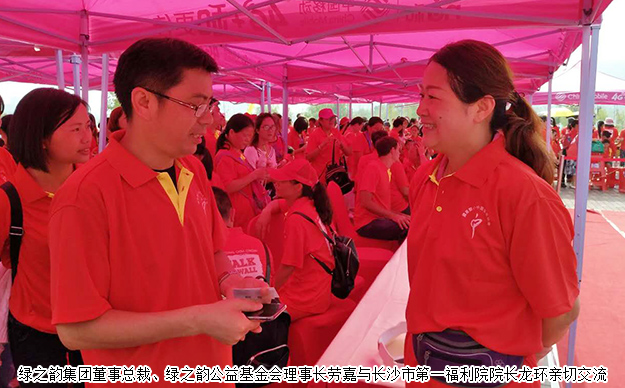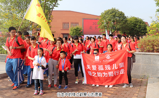 2017年9月23日,長沙彩虹全球第十一屆長沙“走長城”活動在西湖文化園舉行。長沙彩虹總裁彼得、長沙市第一社會福利院龍環(huán)攜手來自社會各界的45個愛心團隊共計1200余人,陪伴長沙彩虹孤殘兒童一起為愛行走。綠之韻集團董事總裁、綠之韻公益基金會理事長勞嘉,綠之韻公益基金會秘書長蔣文攜手30余位綠之韻愛心志愿者助力公益。
