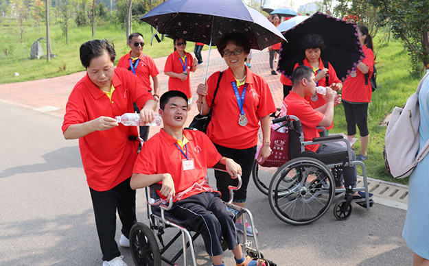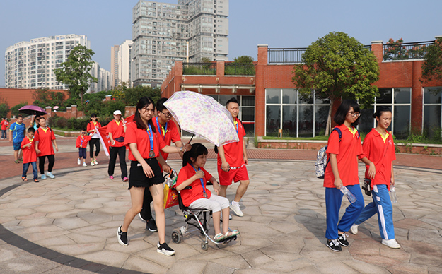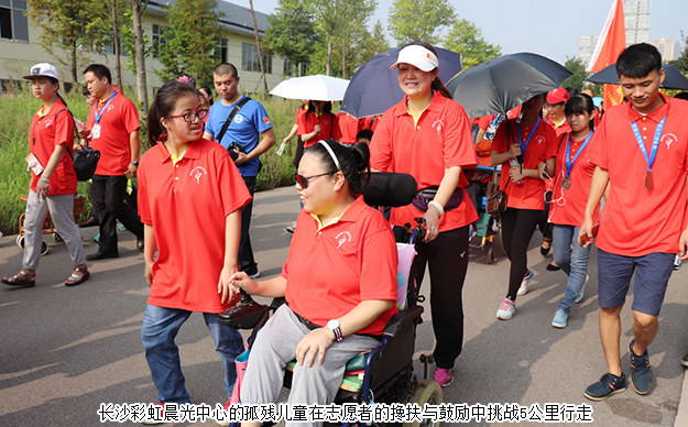 簡短開幕儀式以后,“走長城”(長沙站)公益活動正式開始。來自社會各界的愛心志愿者們從南大門出發(fā),按照指定的路線沿著西湖文化園開始為愛行走。一路上,處處可見穿著統(tǒng)一的紅色公益文化衫的愛心志愿者,他們有的三五成群,奮力競走,好似團隊之間在進行小比拼;有的一家三口全員出動,帶著小孩漫步在西湖畔,沉浸在感知愛、傳遞愛、奉獻愛的氛圍。行走的隊伍中,還有一些借助輪椅、助行器步伐緩慢的孩子,他們是長沙彩虹晨光中心的孤殘兒童。行動不便的他們在志愿者的攙扶與鼓勵中,克服身體障礙,堅毅前行,挑戰(zhàn)5公里行走。行走的愛心志愿者隊伍很快便吸引了不少周邊民眾的廣泛關注,在此休閑、晨練的民眾們從志愿者處了解到此次公益活動的目的后深受感動,自覺加入到愛心隊伍當中,一起為公益行走。