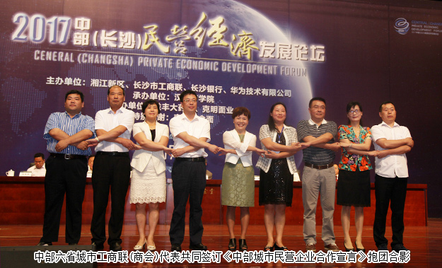 隨著“一帶一路”建設(shè)和《促進(jìn)中部地區(qū)崛起“十三五”規(guī)劃》的實(shí)施,中部地區(qū)成為最具創(chuàng)新創(chuàng)業(yè)潛能的一塊厚土。民營(yíng)企業(yè)作為最具活力的經(jīng)濟(jì)主體,成為促進(jìn)中部崛起的生力軍。在此次論壇上,長(zhǎng)沙市政協(xié)副主席、市工商聯(lián)主席彭繼球致開幕詞,中部六省城市工商聯(lián)(商會(huì))代表共同簽訂《中部城市民營(yíng)企業(yè)合作宣言》。中共長(zhǎng)沙市委副書記、市長(zhǎng)陳文浩在會(huì)上做了重要報(bào)告及干貨分享,他表示:今天論壇的召開,意味著中部兄弟城市商會(huì)與民營(yíng)企業(yè)家抱團(tuán)發(fā)展,拉開了大幕。長(zhǎng)沙的民營(yíng)企業(yè)后發(fā)優(yōu)勢(shì)極為明顯,我們的后發(fā)優(yōu)勢(shì)來自有企業(yè)家的創(chuàng)新,企業(yè)家的開放。企業(yè)家就是創(chuàng)造經(jīng)濟(jì)增長(zhǎng)的真正動(dòng)力,長(zhǎng)沙市委市政府將密集出臺(tái)一系列的文件,包括權(quán)限下放、人才政策、孵化空間、科技創(chuàng)新、質(zhì)量引領(lǐng)和品牌建設(shè)等,實(shí)施監(jiān)督政策全面落實(shí),為民營(yíng)企業(yè)的健康發(fā)展提供強(qiáng)勁的動(dòng)力。