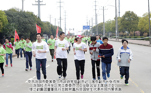 作為一家具有高度社會(huì)責(zé)任感的民族企業(yè),綠之韻集團(tuán)始終秉承“關(guān)愛生命、回饋社會(huì)”的發(fā)展理念,樂善好施,扶危濟(jì)困,努力幫助需要幫助的人。2015年,綠之韻慈善基金經(jīng)湖南省民政廳批準(zhǔn)升級為“湖南省綠之韻公益基金會(huì)”,更大力度、廣度和深度地參與到教育、關(guān)愛老人、賑災(zāi)、扶貧、幫困等社會(huì)慈善事業(yè),截至目前已經(jīng)累計(jì)捐款捐物達(dá)6000多萬元。綠之韻集團(tuán)董事長胡國安在活動(dòng)現(xiàn)場接受湖南經(jīng)視、瀟湘晨報(bào)、長沙晚報(bào)、紅網(wǎng)、三湘都市報(bào)、華聲在線、瀏陽電視臺(tái)、瀏陽日報(bào)等媒體采訪時(shí)表示:因?yàn)榫€上線下愛心集結(jié),“綠跑”活動(dòng)不僅洋溢出青春與活動(dòng),也充滿了愛和希望,是一次有意義、有情懷的“健康+公益”活動(dòng)。通過“綠跑”,我們呼吁更多的市民投身健康運(yùn)動(dòng),為公益事業(yè)增添正能量,為“健康中國”的美好愿景貢獻(xiàn)自己的一份力量!