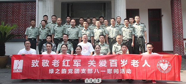 離開(kāi)湖南省軍區(qū)干休所,慰問(wèn)小組一行感觸良多。正因?yàn)橛挟?dāng)年那些的血奮戰(zhàn)的共產(chǎn)黨人方能成就今天的太平盛世。而今天,在綠之韻黨總支部成立八周年的今天,我們依然堅(jiān)持黨組織參與企業(yè)重大問(wèn)題決策,努力使黨總支部與企業(yè)完美結(jié)合,從而保證綠之韻沿著正確的道路不斷前行。而每年八一建軍節(jié),胡國(guó)安董事長(zhǎng)都會(huì)帶領(lǐng)黨團(tuán)支部成員,舉辦系列慰問(wèn)活動(dòng)。感謝老紅軍們?yōu)楸<倚l(wèi)國(guó)作出的貢獻(xiàn),我們定當(dāng)以老紅軍為楷模,繼承優(yōu)良傳統(tǒng),發(fā)揚(yáng)革命精神,踐行“誠(chéng)信經(jīng)營(yíng) 永續(xù)發(fā)展 造福人類 回饋社會(huì)”的經(jīng)營(yíng)理念,為實(shí)現(xiàn)“中國(guó)夢(mèng) 綠之韻夢(mèng)”而奮斗。